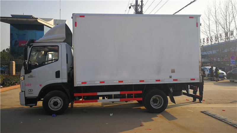 上汽跃进国六C500自动档4米2冷藏车标准配置:箱体尺寸长×宽×高为:4090×2080×1800,15.3立方,厢体厚度为8厘米。内外板材采用冷藏车专用玻璃钢,(可反射阳光),中间夹层为聚氨酯发泡隔热材料,(防火阻燃隔热)厢板表面材料有玻璃钢、不锈钢、铝合金、彩钢板等材料可供选择,厢体成型后具有质量轻,保温系数高,抗冲击力强,无渗漏等优点,对大气、水和酸、碱、盐等介质具有良好的耐腐蚀性和抗老化性 。通过优化设计,降低了整车质心,增大了有效容积。经测试,整车综合节能率,使用寿命,比一般冷藏保温厢高1~2倍。厢体副驾驶边选开侧门,选装地板通风槽,加强型肉钩骨架,加装M型肉钩导轨,温湿度记录仪等设备。