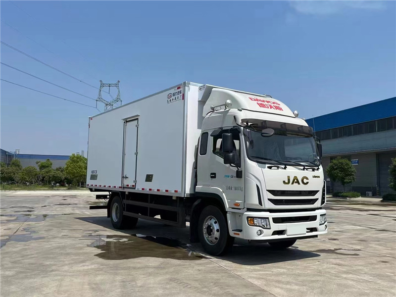 江淮帅铃德沃斯Q9排半6.8米冷藏车上装专用配置:冷藏箱体尺寸:6800*2450*2500(mm) ,《断桥隔温工艺、整体结构框架》;内外面料为3mm新款玻璃钢;侧板+顶板:龙骨断桥为松木复合板;木质隔温结构;夹心为聚苯乙烯保温材料;全密封双组合聚氨酯胶粘连;厢体厚度为8cm;顶板10cm厚,底板12cm厚,镀锌包角;最新款铝合金包边型材;型材局部厚度为4mm(钢制铆钉加固);厢体内部采用2个LED照明灯及厢体示宽灯;