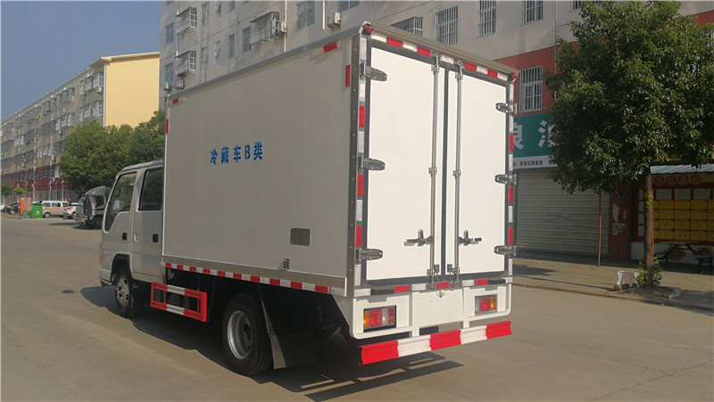 五十铃蓝牌海鲜冷链运输车车辆配置:五十铃100P双排驾驶室,驾驶室可坐5人。五十铃4KH1CN6LB发动机120马力88KW,五十铃5档变速箱,油啥,驾驶室带原厂空调,方向助力,ABS,选装电动玻璃,中控锁,遥控钥匙,2.5吨前桥,3.5吨后桥,650R16钢丝胎,可调节大灯,刹车自动调整臂。