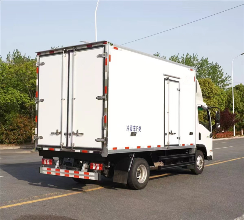 江淮威铃蓝牌4米2冷藏车车专用配置:保温箱体尺寸:4015×2100×2200(mm),《断桥隔温工艺、整体结构框架》;内外面料为2mm新款玻璃钢;侧板+顶板:龙骨断桥为松木复合板;木质隔温结构;夹心为聚苯乙烯保温材料;全密封双组合聚氨酯胶粘连;厢体厚度为8cm;镀锌包角;最新款铝合金包边型材;型材局部厚度为4mm(钢制铆钉加固);厢体内部采用1个LED照明灯及厢体示宽灯;后门框为2mm厚不锈钢材质;门框密封条为三元乙丙橡胶材质;加厚型不锈钢合页及锁件;副梁为Q700车用大梁钢;15mm厚大梁垫皮;加装防撞胶块;不锈钢门锁件,配后双开门。底板为塑钢花纹板,单侧门。