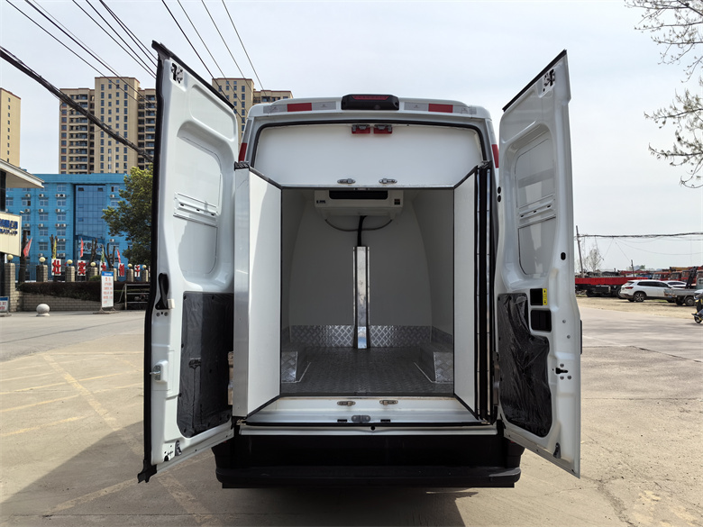 依维柯欧胜3.0排量自动挡面包冷藏车标准配置:保温箱体内尺寸2870x1640X1700(mm),箱体采用内外玻璃钢,中间8cm厚保温板,铝花纹底板,铝合金型材包边、直角条,不锈钢锁件、铰链、门框带隔热条,LED箱内照明灯,飞机梁,迷宫式隔热门皮条,开侧门,双开后门。箱体选装:内不锈钢、通风槽、肉钩导轨、卡槽。药品疫苗装5面通风槽和温湿度记录仪。冷机选装:冷王、开利、松芝、凯雪、易德、凯利、华泰、凯达、冰皇等等,温度可以设置恒温在+20℃至-20℃之间,选装220W/380W伏外接备用电源.