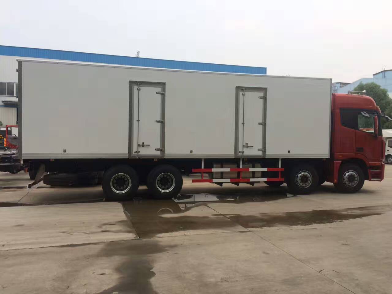 我公司生产的福田欧曼国五前四后八9米6冷藏车是用原装福田欧曼定型二类底盘改装而成,具有马力大,自重轻,采用国内外知名冷藏机组,降温快,冷藏效果好。外观美观大气。广泛用于食品,水果,蔬菜,医疗,水产,烟草,快递,邮政,超市,家居,物流等等。本公司产品全面通过ISO9001-2000国际质量体系认证,是湖北省知名品牌,湖北省质量信得过产品。