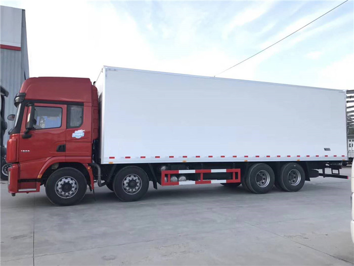 箱体尺寸长×宽×高为:9500×2420×2500约56.5立方,厢体采用程力晶龙新工艺制作。冷藏厢体内外板材采用冷藏车专用玻璃钢,(可反射阳光),中间夹层为8CM聚氨酯发泡隔热材料,(防火阻燃隔热),千吨压机厢板生产线压制而成,配置箱体全为不锈钢锁件,不锈钢包角,不锈钢门框,带有顶灯及防撞块。厢体底部为玻璃钢板,加装铝合金材质的通风槽。我厂的冷藏保温车保温材料选用进口级别XPS,吸水率≤1,导热系数≤0.028W/mk,抗压≥150Kpa,密度30~45kg/m3,使用国际上最为先进的第五代全封闭聚氨酯板块粘接结构,厢板表面材料有玻璃钢、不锈钢、铝合金、彩钢板等材料可供选择,厢体成型后具有质量轻,保温系数高,抗冲击力强,无渗漏等优点,对大气、水和酸、碱、盐等介质具有良好的耐腐蚀性和抗老化性 。通过优化设计,降低了整车质心,增大了有效容积。经测试,整车综合节能率,使用寿命,比一般冷藏保温厢高1~2倍。